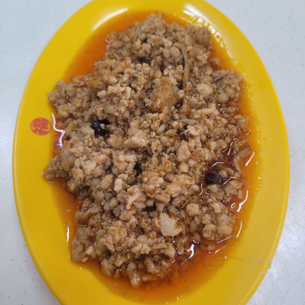 * Minced Meat: A generous serving of flavorful minced meat, possibly pork, in a rich, dark sauce. This is a common and comforting addition to many economic rice-style plates.