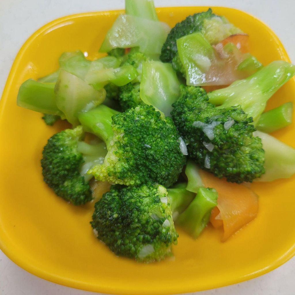 * Broccoli: Fresh, vibrant green broccoli florets, lightly stir-fried, possibly with garlic, offering a nice crunch and a touch of greens to the meal.